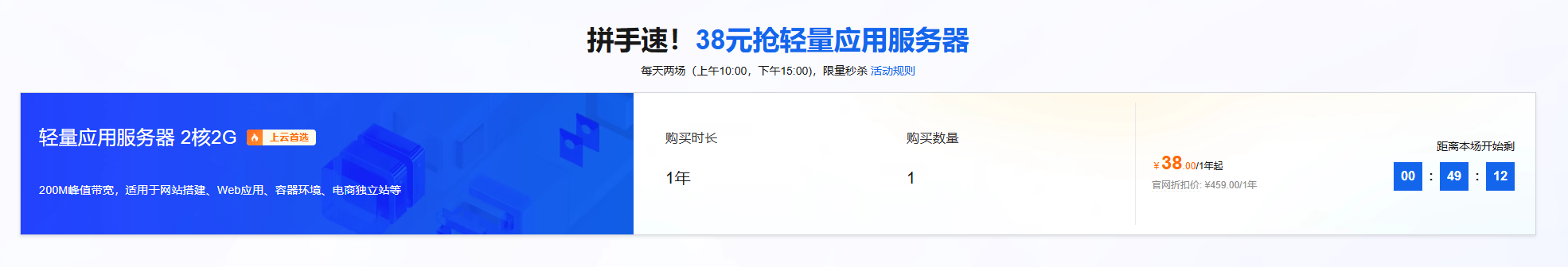 这几天看到阿里云的新人优惠活动,38 块钱一年!果断下单!